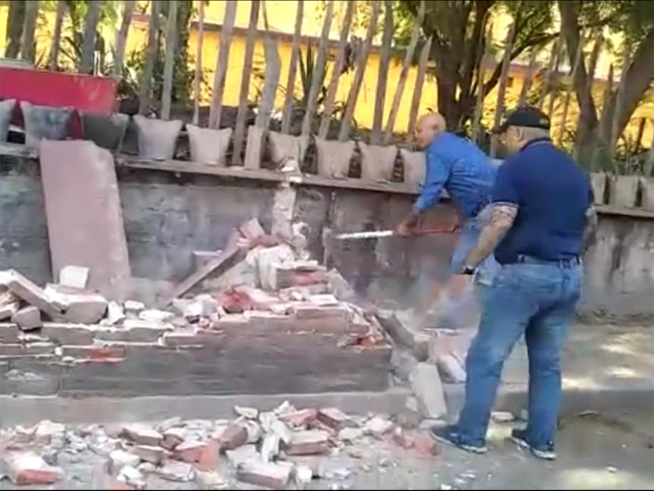 Primero, tal como se ve en el video, los operarios rompieron toda la construcción de parrilla y posteriormente, continuaron con un horno de barro que era utilizado para cocinar empanadas y sfijas.