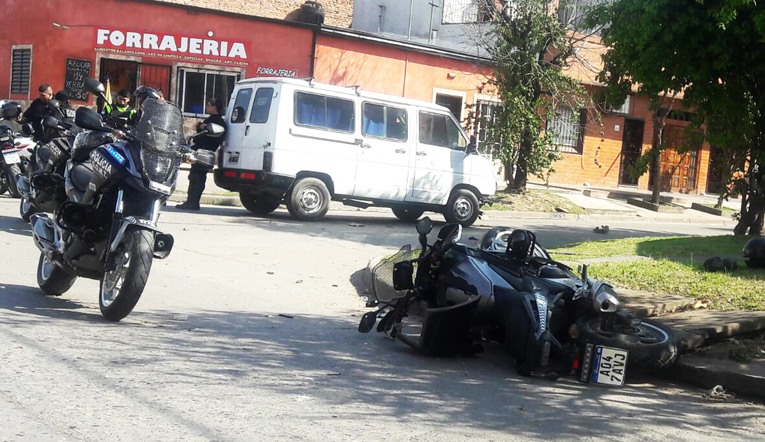 Cuando perseguían a motochorros, a la altura de Paso de los Andes y Corrientes, una de las “supermotos” se rozó con una combi blanca, y los efectivos se cayeron. La moto policial de última generación quedó inutilizada.