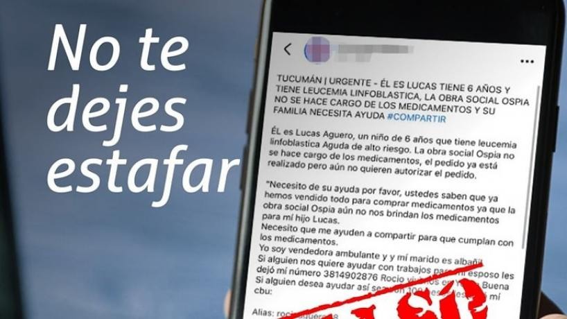 El Ministerio de Salud de Tucumán advirtió a la población sobre una estafa que circula en redes sociales, donde se solicita dinero para un supuesto niño con cáncer. Las autoridades pidieron no difundir este tipo de mensajes ni realizar transferencias de dinero sin verificar la información.