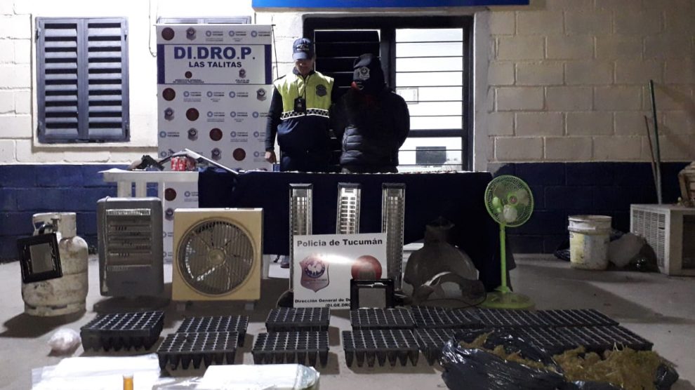 Cuando los agentes de la Unidad de Investigaciones Criminales y Delitos Complejos de Lomas de Tafí y de Infantería de la Unidad Regional Norte llegaron al domicilio del sospechoso, encontraron un invernadero en el fondo. Allí la policía encontró 644gramos de marihuana, 868 semillas de cannabis sativa, tres estufas de cuarzos de dos velas, una garrafa de 10 kilos, un ventilador de pie, bolsas usadas para fraccionar la sustancia y 200 raíces de las plantas que ya habían sido cosechadas. Ante este hallazgo se pidió la intervención de la Dirección de Drogas Peligrosas.
