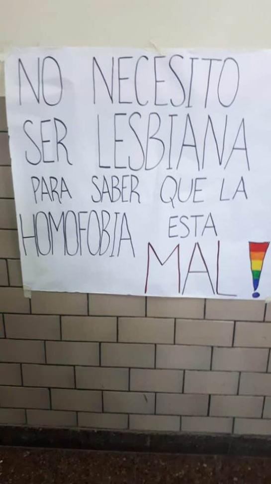 El patio de un colegio privado religioso de la capital, ubicado en Avenida Sarmiento al 200 amaneció la semana pasada repleto de carteles con las leyendas: “las diferencias nos enriquecen, el respeto nos une”, “ la homosexualidad no agrede ni contagia”.