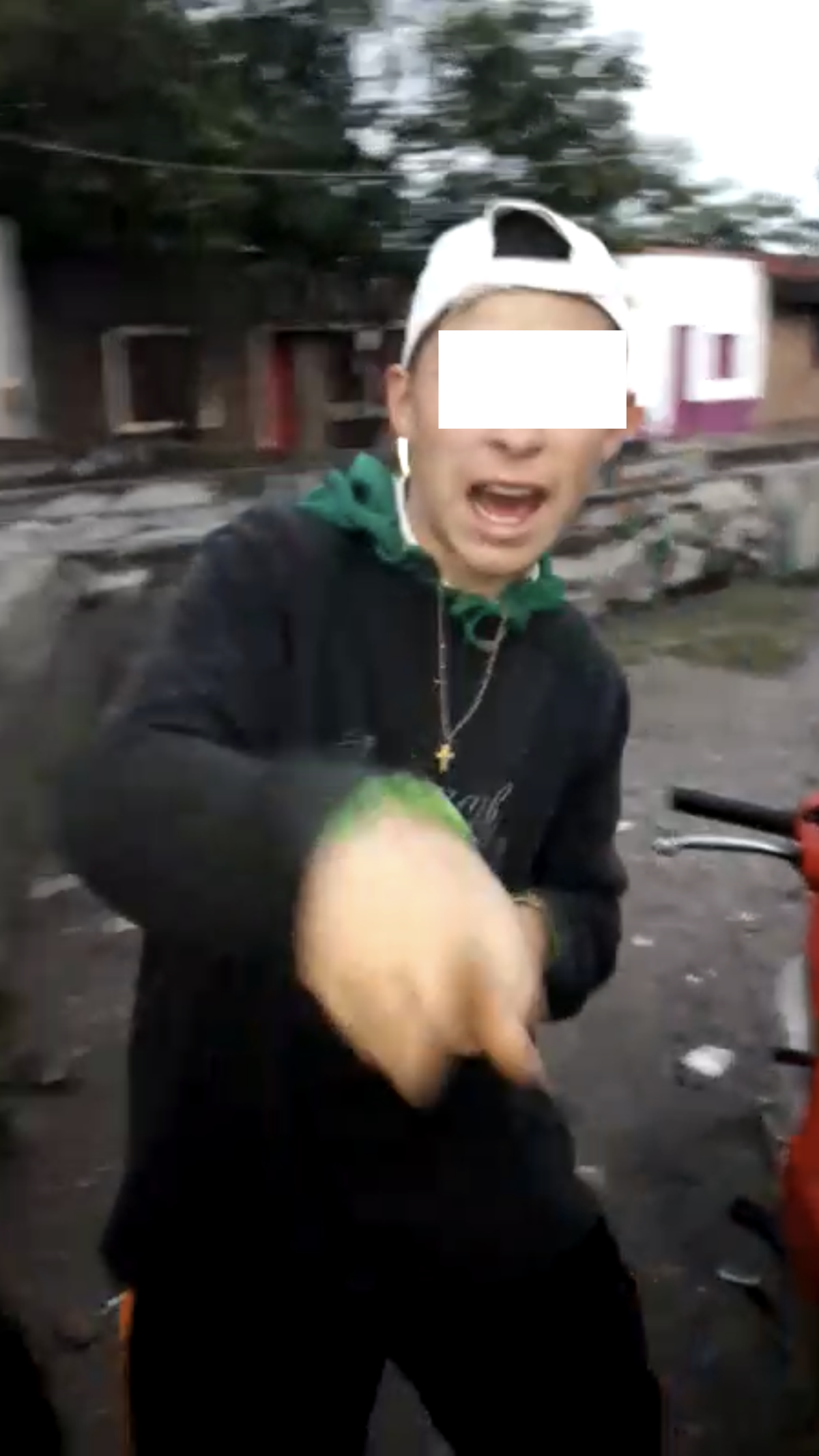 Cualquier persona que ve el video posiblemente piense que se trata de alguna clase de broma juvenil de no ser porque el protagonista, que tiene 17 años, es uno de los vinculados en el brutal crimen del cabo Roberto Andrés Lucena, de 42 años.