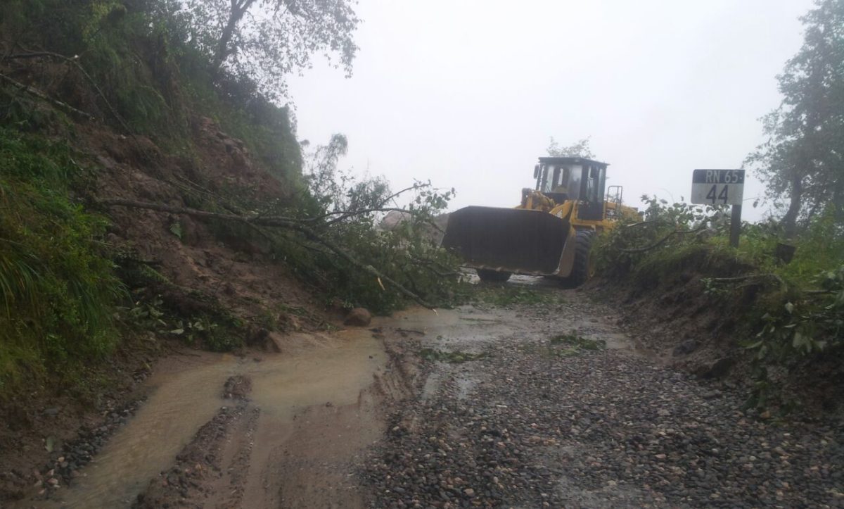 Por otro lado, la Ruta Nacional 65 se encuentra cortada por derrumbes desde el kilómetro 43 al 44. Las precipitaciones continúan en el lugar, lo cual dificulta los trabajos en el camino.