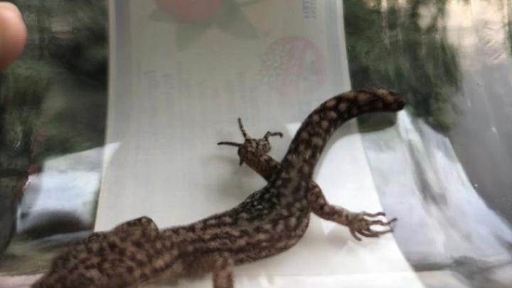 Los propietarios de un departamento ubicado en Monteagudo al 100, primero se asustaron cuando descubrieron que estaban conviviendo con un pequeño reptil de color gris. Atraparon con cautela al reptil para llevarlo a la fundación Miguel Lillo donde se evaluará sus condiciones.