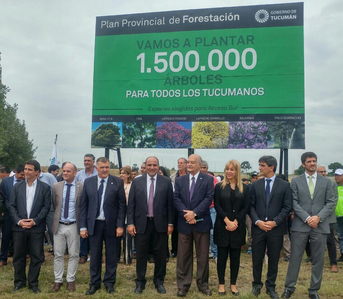 Este martes, en el Día del Bosque, se dio inicio al programa de reforestación de la provincia en el Acceso Sur de San Miguel de Tucumán, intersección de las rutas 9 y 38, donde se colocarán 200 especies.