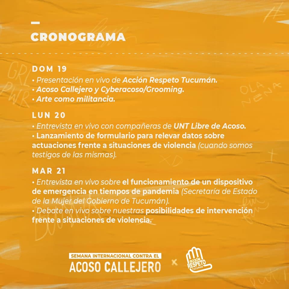 “Además de visibilizar la problemática y preguntarnos de qué hablamos cuando hablamos de acoso y cuáles son las nuevas formas que adquiere a medida que pasa el tiempo, vamos a hacer entrevistas en vivo a través de Instagram con profesionales que están trabajando en los dispositivos de emergencias para que nos cuenten cómo funcionan en este momento para asistir a víctimas de violencias; charlaremos en vivo con docentes para que nos den un panorama sobre la implementación de la ESI ahora que la escuela se trasladó a las casas; y también tendremos contacto con referentes de las organizaciones que están ayudando a las personas trans a sobrellevar esta situación tan cruda”, anticipó Agostina Tosi (29), estudiante de Psicología e integrante de la organización transfeminista que en Argentina sólo tiene sede en Buenos Aires y en Tucumán,