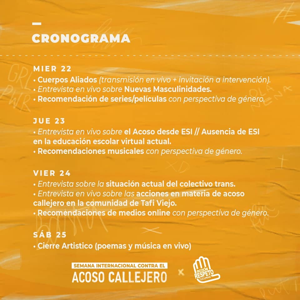 “Además de visibilizar la problemática y preguntarnos de qué hablamos cuando hablamos de acoso y cuáles son las nuevas formas que adquiere a medida que pasa el tiempo, vamos a hacer entrevistas en vivo a través de Instagram con profesionales que están trabajando en los dispositivos de emergencias para que nos cuenten cómo funcionan en este momento para asistir a víctimas de violencias; charlaremos en vivo con docentes para que nos den un panorama sobre la implementación de la ESI ahora que la escuela se trasladó a las casas; y también tendremos contacto con referentes de las organizaciones que están ayudando a las personas trans a sobrellevar esta situación tan cruda”, anticipó Agostina Tosi (29), estudiante de Psicología e integrante de la organización transfeminista que en Argentina sólo tiene sede en Buenos Aires y en Tucumán,