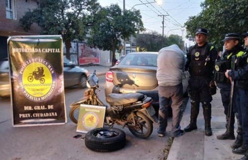 Un hombre fue detenido este viernes a las 17:50 en calle Monteagudo al 1020, en San Miguel de Tucumán, cuando intentaba robar una rueda de auxilio. El hecho fue descubierto por motoristas del Sistema Integrado de Emergencias 911, que realizaban recorridos preventivos y sorprendieron al sospechoso en plena acción, usando una herramienta casera conocida como “chupete”.
