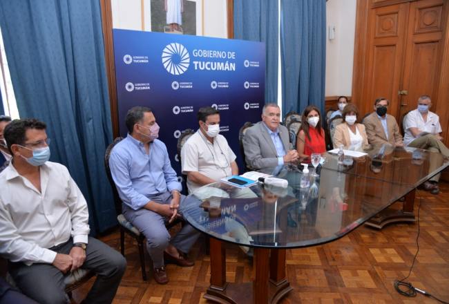 De la conferencia de prensa con anuncios participaron también el vicepresidente de la Legislatura, Regino Amado; la secretaria general de la Gobernación, Silvia Pérez; los ministros Luis Medina Ruíz (Salud Pública), Eugenio Agüero Gamboa (Seguridad), Gabriel Yedlin (Desarrollo Social), Álvaro Simón Padrós (Desarrollo Productivo); el fiscal de Estado, Federico Nazur; el secretario Ejecutivo médico del Siprosa, Miguel Ferré Contreras; el subinterventor de la Caja Popular de Ahorros, Hugo Ledesma; los legisladores Gonzalo Monteros y Graciela Gutiérrez; y la directora de Gestión Sanitaria, Alejandra Mattiacci.