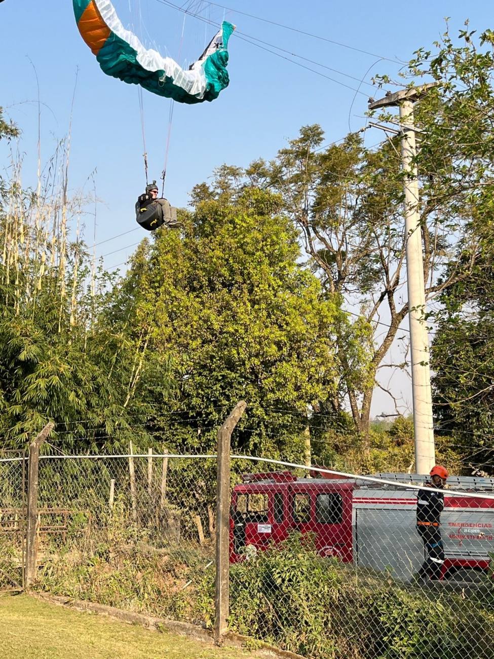 Este sábado, minutos antes de las 17 horas, un parapentista que descendía en la zona sur de Yerba Buena, cerca del country Los Azahares, se enredó accidentalmente en cables de alta tensión. Afortunadamente, el hombre resultó ileso, aunque quedó colgando a más de 10 metros del suelo. El incidente requirió un amplio operativo de rescate por parte de los Bomberos Voluntarios de Yerba Buena y la interrupción temporal del servicio eléctrico por parte de EDET.