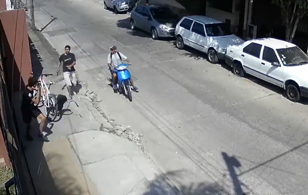 Un adolescente sufrió el robo de su bicicleta este miércoles por la tarde en la puerta de su casa, en Pasaje Brandsen al 2.400. Toda la escena quedó registrada en una cámara de seguridad.