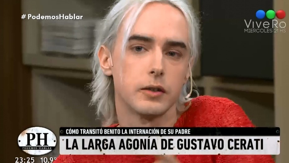 El próximo martes se cumplirán cuatro años de la desaparición física de Gustavo Cerati y su recuerdo permanece inalterable en todos sus fans y especialmente en sus seres queridos. Por eso, aprovechando su presencia en PH, Podemos Hablar, Andy Kusnetzoff le preguntó a Benito, uno de sus hijos, cómo había vivido la larga agonía del ex líder de Soda Stereo. El joven recordó momentos duros y hasta como fue el último adiós antes de Acv.
