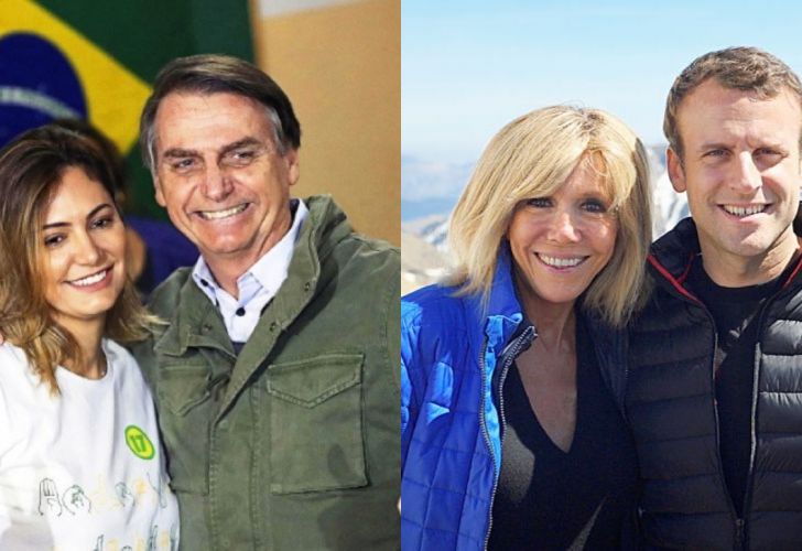 El internauta colocó lado a lado una fotografía de Bolsonaro y de su esposa (que es 27 años menor que él) y una del gobernante francés junto a Brigitte Macron (66 años), que es 24 años mayor que el mandatario galo.