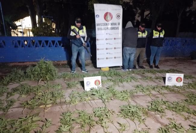 Al intentar interceptarlo, el sospechoso huyó y se refugió en una vivienda. Con la autorización del propietario de la casa, los agentes ingresaron y encontraron en el fondo de la propiedad 390 plantas de marihuana, algunas de hasta 60 centímetros de altura.