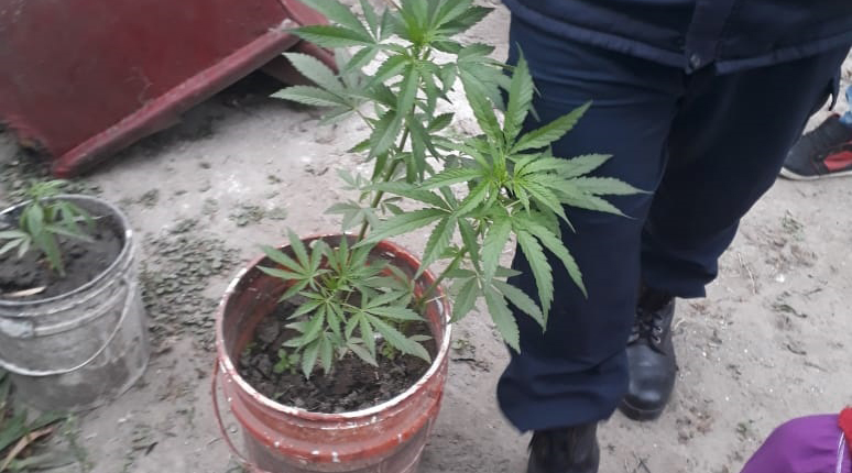 Mientras llevaban a cabo la medida, en búsqueda de armas de fuego y municiones, hallaron seis macetas con plantines que parecían ser cannabis. Inmediatamente se dio aviso a la Dirección de Drogas Peligrosas Sur y personal de esa Unidad Especial se presentó en el lugar para realizar los análisis y protocolos correspondientes.