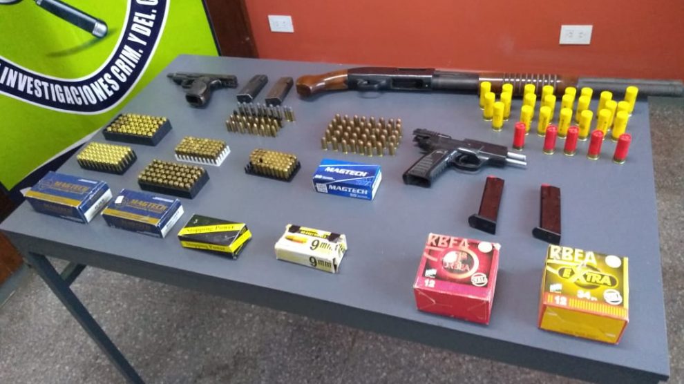 Mientras tanto, en la segunda vivienda descubrieron un arsenal de armas y municiones. En total, secuestraron dos armas de fuego tipo pistola calibre 9 mm y calibre 40 mm, una escopeta calibre 12, 40 cartuchos calibre 11.25, 43 cartuchos calibre 40, 28 cartuchos de escopeta calibre 12 y nueve cartuchos calibre 38.