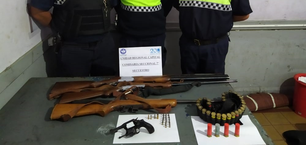 Una gran cantidad de armamento se secuestró durante este operativo:  una escopeta calibre 12, con caño superpuesto que estaba descargada, una carabina  calibre 22 también descargada , 4 cartuchos de escopeta de