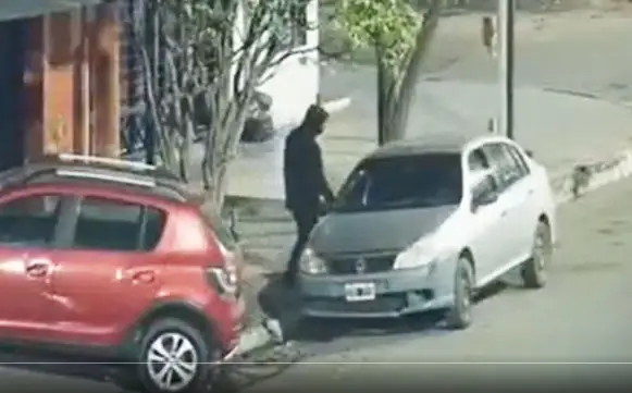 Cámaras de seguridad: delincuente filmado en el momento en que roba dentro de un coche