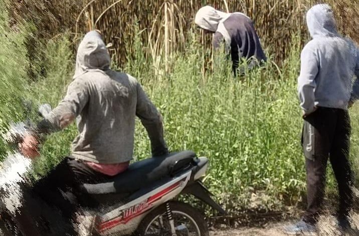 Pasado el mediodía de este miércoles un vecino fotografió a tres personas en inmediaciones de una finca ubicada a metros de la avenida del Bicentenario (frente a la VTV), provocando la quema de cañaverales.