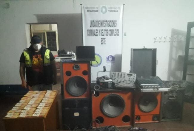 Además de la captura, se logró secuestrar el dinero, parlantes y aparatos de sonidos, entre ellos una mezcladora, una consola de sonido y una computadora, los cuales quedaron a disposición de la fiscalía y el juzgado interviniente.