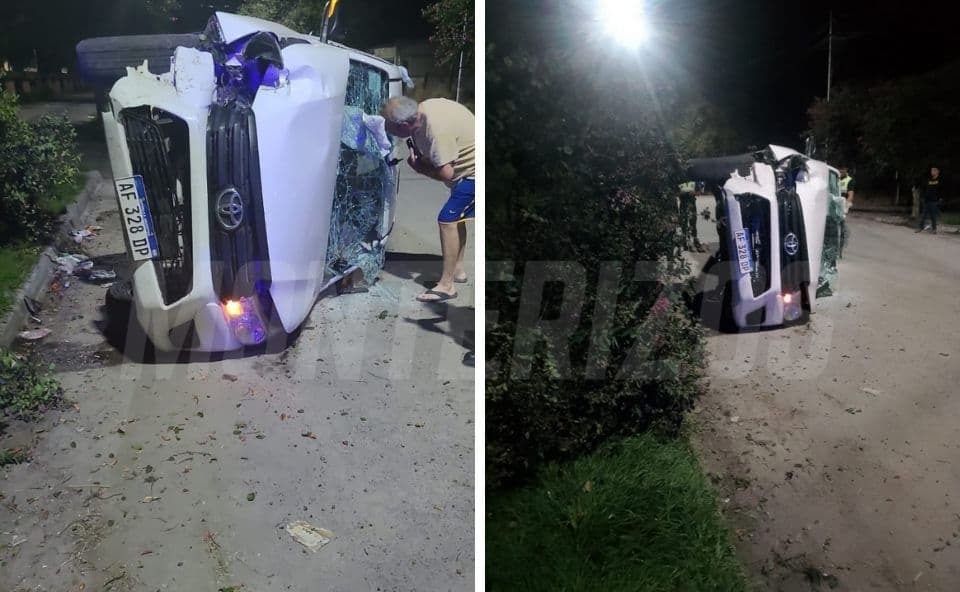 En el lugar, el conductor de una camioneta Toyota Hilux perdió el control del vehículo, chocó contra un árbol y terminó volcado de costado sobre el pavimento.