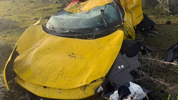 Un comerciante de 51 años, identificado como Diego Martínez y domiciliado en Canning, perdió el control de su Ferrari amarilla y terminó incrustado en un campo, en la intersección de las rutas 6 y 16, a la altura de Guernica, provincia de Buenos Aires. El accidente ocurrió este martes y, aunque el auto quedó destrozado, el conductor salió ileso y se fue del lugar antes de que llegara la Policía.