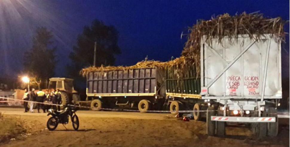 Una rastra cañera y dos camiones que al parecer también transportaban caña, protagonizaron en la mañana de este miércoles un violento choque en cadena.