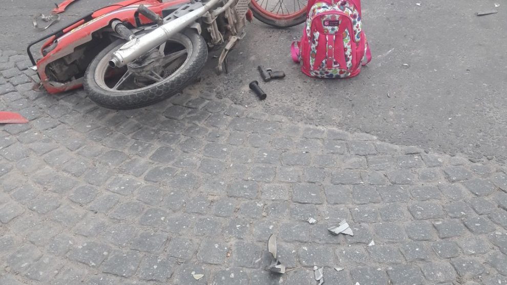 A bordo de una moto Yamaha de 110 cilindradas, interceptaron a una mujer de 38 años de edad a metros de la esquina de Moreno y Bolívar. Amenazándola con un arma de fuego le sacaron la mochila.