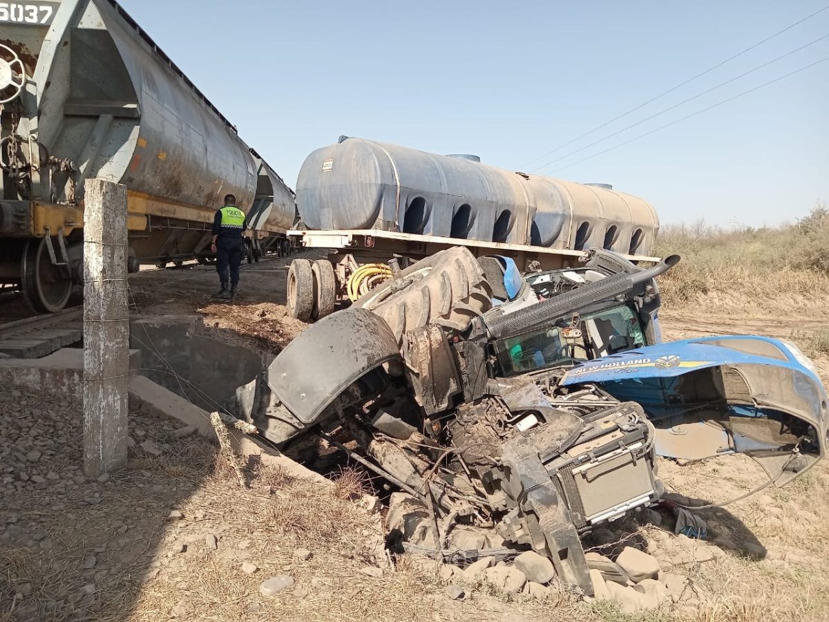 Un accidente vial se registró este viernes en la localidad de Tres Pozos, departamento Leales, cuando un tractor fue embestido por una locomotora en un paso ferroviario, dejando a dos personas heridas.