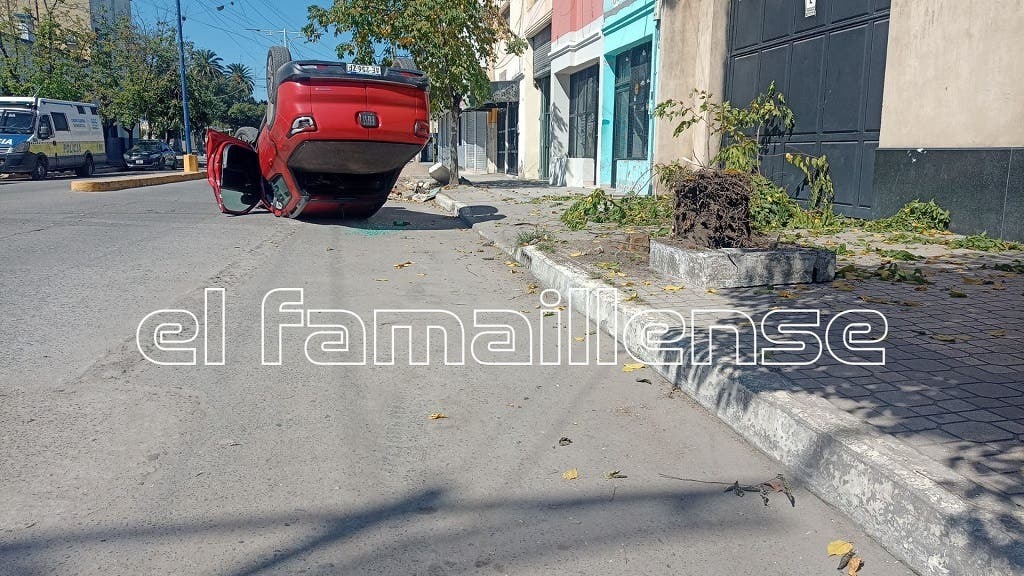 El incidente ocurrió en la avenida Mitre del casco urbano de la ciudad. Por razones aún desconocidas, la camioneta Fiat Toro que conducía chocó contra un árbol, lo que provocó que el vehículo diera una vuelta de campana y quedara volteado sobre su techo.