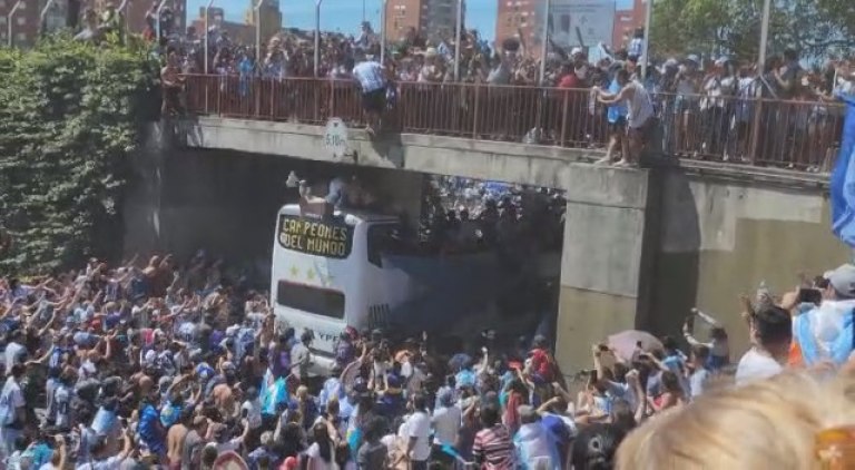 La gran cantidad de gente que se acercó a los diferentes puntos de la CABA y la falta de organización impidió que los jugadores terminen de realizar el recorrido en el ómnibus descapotable que había salido del predio de la Asociación del Fútbol Argentino (AFA) durante el mediodía.
