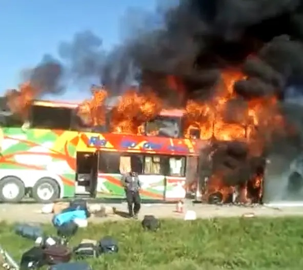 El hecho ocurrió alrededor de las 10.30, cuando por razones que se investigan el ómnibus que trasladaba a 50 obreros golondrina procedentes de Mendoza se prendió fuego.