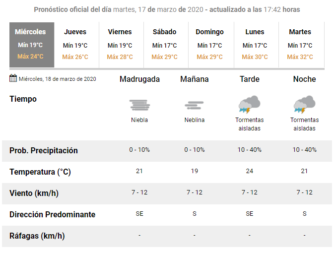 Este miércoles 18 de marzo, el termómetro en Tucumán arrancó con 19° C y no se detuvo hasta superar la máxima de los 24°, pronosticados para esta jornada. De igual manera, lo invitamos a seguir las medidas tomadas por el gobierno provincial y nacional e insistimos en quedarnos en casa para prevenir entre todos, al coronavirus.