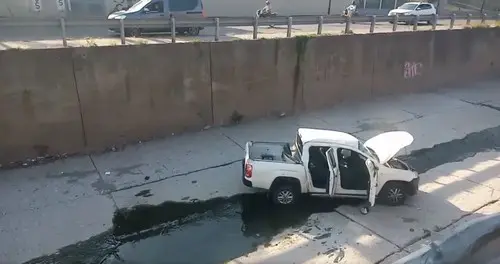 “Venía en primera, cruzando el puente. La camioneta me hizo dar la vuelta de repente, siguió su curso, voló y cayó al canal. Venía a alta velocidad”, dijo la propietaria del vehículo menor.