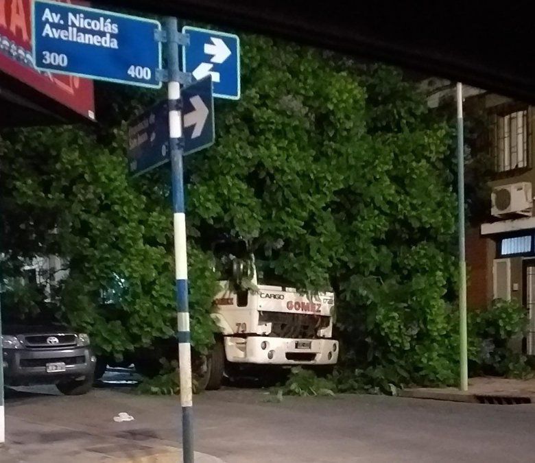 Un camión enganchó la rama desprendida de un árbol, lo que provocó su caída en Avenida Avellaneda y San Juan, por lo que la intersección mencionada, se encuentra cortada debido a que el rodado y el ejemplar deben ser quitados por la Municipalidad.