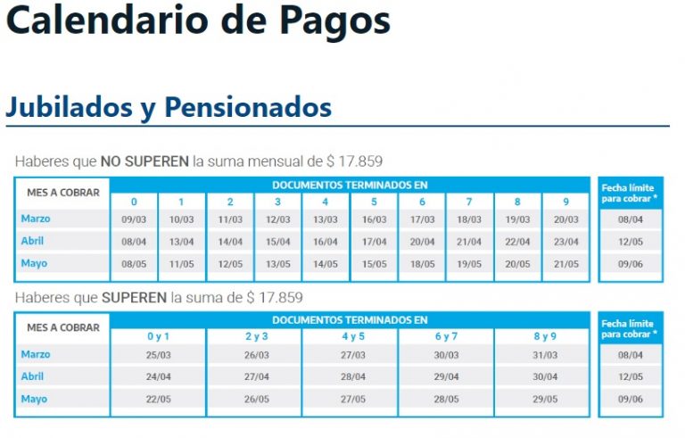 Cabe aclarar que los beneficios previsionales que, según el calendario de pagos publicado en la web institucional del organismo https://www.anses.gob.ar/ debían pagarse el miércoles 25 y el jueves 26 de marzo mantendrán sus fechas sin cambio alguno.