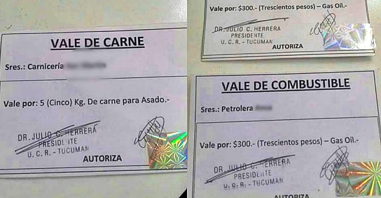 También, circularon imágenes de vales de carne y combustible, con firma del secretario de Gobierno de Concepción, Julio César Herrera. “Son para el traslado de los fiscales y para su comida”, se defendió Herrera.