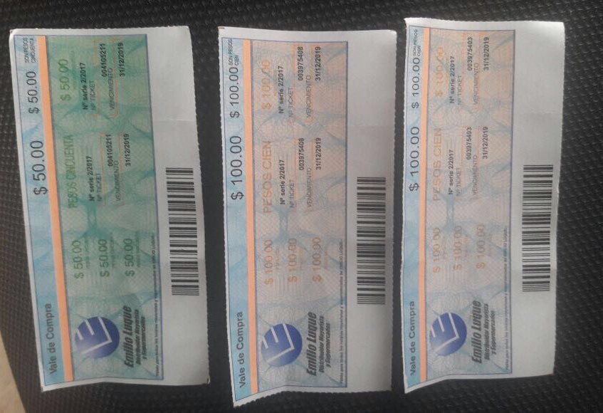 El intendente de Tafí Viejo, Javier Noguera publicó en Twitter fotos de una boleta de Cambiemos junto a vales de compra por $50 y $100. “En este momento militantes de Cambiemos de Tafí Viejo entregan votos y tickets de alimentos de Emilio Luque“, escribió Twitter.