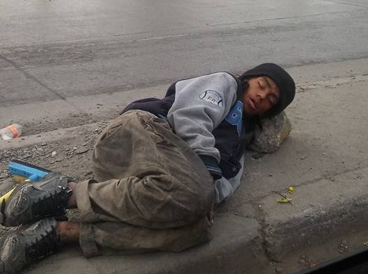 Esa vez se viralizó la publicación de un joven que compartió fotografías de un chico en la calle que duerme tendido en una platabanda de una avenida de la capital tucumana y utilizando una piedra a modo de almohada.