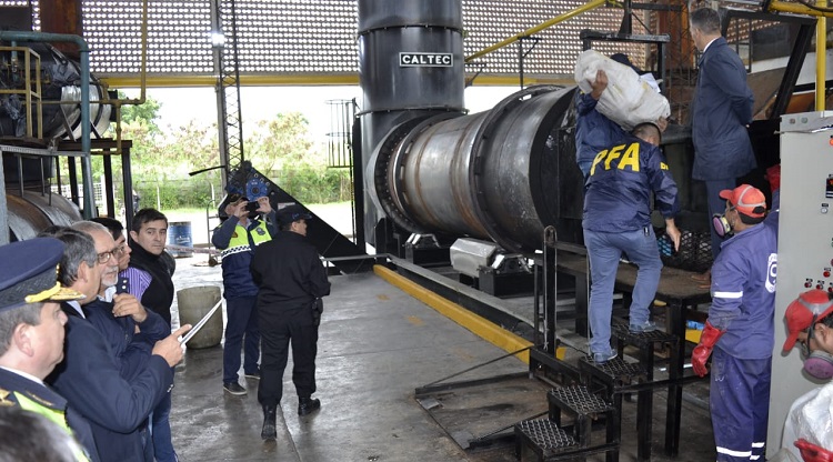 Por orden del Juzgado Federal la droga fue trasladada al laboratorio pericial de la Policía Federal Argentina (PFA) donde se tomó una muestra y se pesó cada uno de los panes de marihuana, posteriormente esa droga sea quemada en un horno pirolíptico a los efectos de su destrucción, todo esto bajo un oficio judicial con testigos.