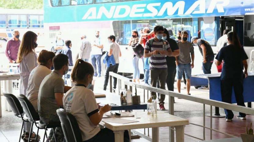 Con respecto a cómo trabajan ante la llegada de un contingente, la doctora indicó: ¨ El colectivo llega a las plataformas señalizadas donde pueden estacionar, a todo el grupo completo incluidos coordinadores y choferes, se les toma temperatura, se los sanitiza, y se les hace una evaluación clínica por si se detecta algún síntoma durante la espera. Luego pasan al test de anosmia y, finalmente, se hisopa a todo el grupo por considerarse en ese momento grupo de riesgo por regresar de otra provincia¨.