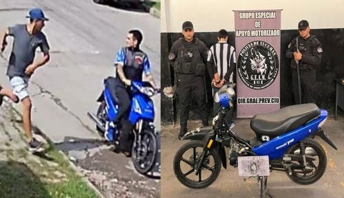 El arresto fue realizado por personal del Grupo Especial de Apoyo Motorizado (GEAM), que identificó al sospechoso por su apariencia y la moto en la que se trasladaba. En el video se podía ver con claridad cómo dos hombres en motocicleta le robaban el celular a una mujer que caminaba por la zona.