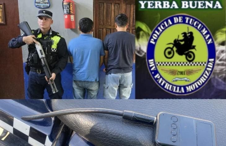 Dos hombres fueron detenidos este miércoles por la mañana en Yerba Buena luego de que la Policía les encontrara un dispositivo electrónico utilizado para inhibir sistemas de alarma y cierre centralizado de vehículos. El procedimiento fue realizado por efectivos de la División Patrulla Motorizada Yerba Buena en la esquina de Pringles y Universo, tras advertir la actitud sospechosa de los individuos.