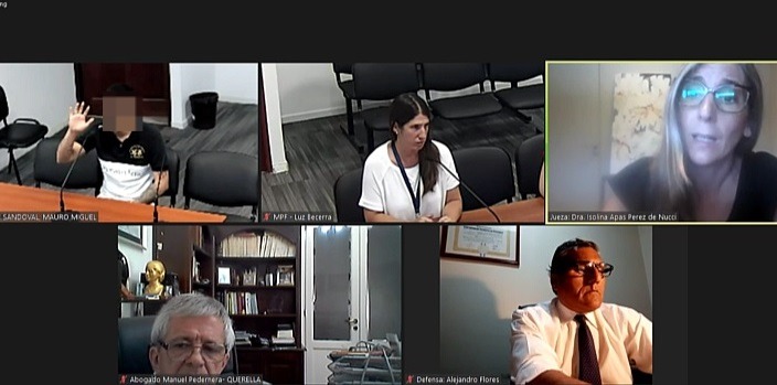 Mientras que el cuarto de los asaltantes es Mauro Miguel Sandoval (19), quien será enjuiciado por ser el único acusado de dispararle a Cáceres y quitarle la vida. La auxiliar de fiscal Luz Becerra, presente en esta audiencia, le endilgó ser autor del delito de homicidio agravado criminis causa, en concurso real con robo agravado por el uso de arma de fuego operativa en grado de tentativa, en concurso real con homicidio en grado de tentativa agravado por el uso de arma de fuego. La pretensión punitiva de la Fiscalía es la prisión perpetua.