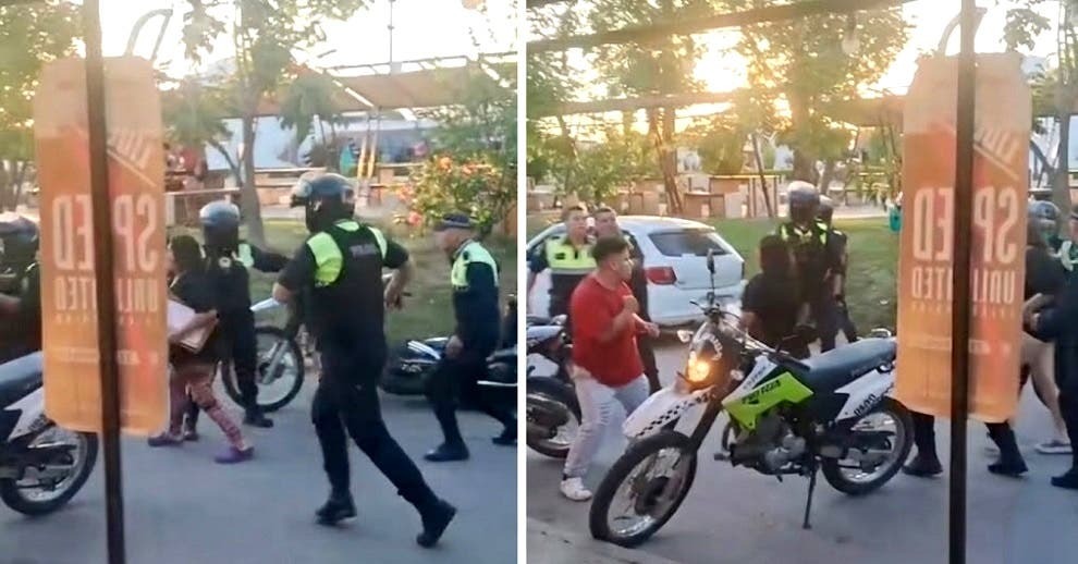De acuerdo con los testimonios, el hecho comenzó cuando un motociclista llegó al domicilio de su pareja y estacionó la moto sobre la vereda de un maxikiosco. Minutos después, personal policial habría intentado retirar el rodado por la presunta infracción, lo que derivó en una discusión al negarse el conductor a que se llevaran el vehículo.