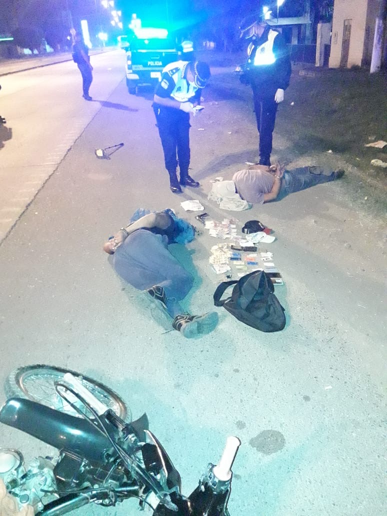 Los dos aprehendidos habían intentado esquivar el control policial, pero fueron reducidos. Al requisarlos descubrieron que llevaban un revólver calibre 32, 11 cartuchos, $3.200, celulares y tarjetas.