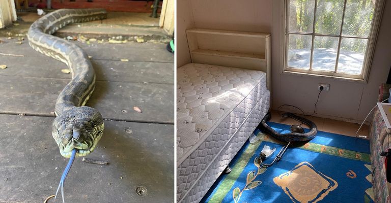 Un vecino de la localidad de Laceys Creek, Queensland, recibió una visita de terror.  Al llegar a la vivienda de fin de semana descubrió un enorme agujero en el techo de su cocina. Como no se había producido ninguna tormenta capaz de generar ese tipo de daños, el hombre comenzó a buscar el motivo de los daños y se encontró en el suelo a dos pitones de gran tamaño.