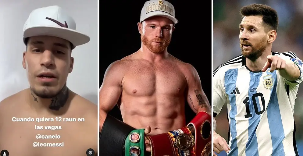 Filmándose en primer plano, el chubutense desafía a través de una historia de Instagram al mexicano: “¿Qué onda Canelo, canelón? ¿Qué onda con Messi? Mirá que acá el que se mete con Messi, saltamos todos los argentinos guacho”. Para luego advertirle: “Ojo perro. Guarda guacho con Messi no. Todo bien con el saludo que me mandaste una vuelta pero con Messi no guacho”.