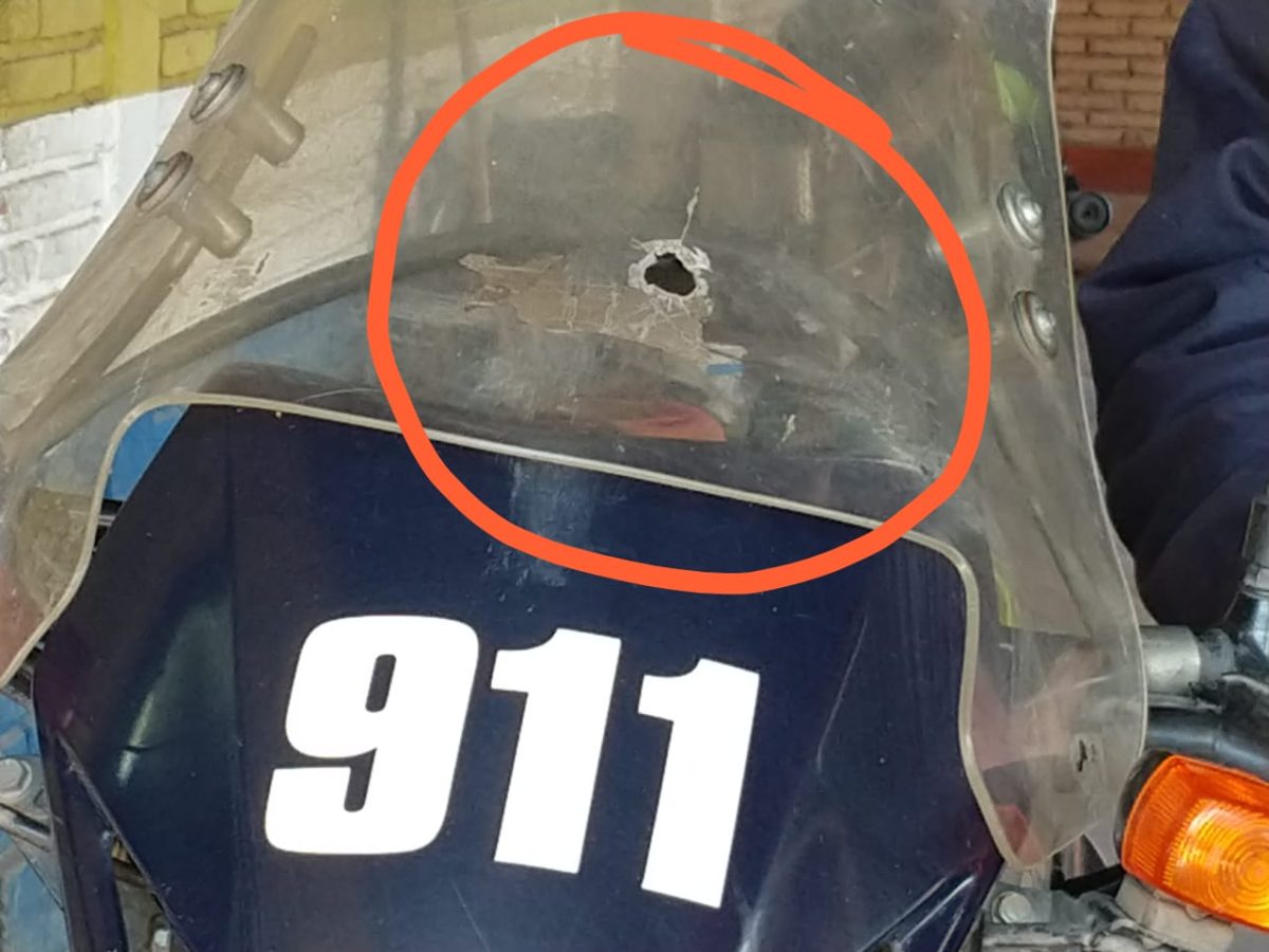 El impacto de bala atravesó el parabrisas que cubre el tablero de la moto: allí dejó un orificio de unos tres centímetros de diámetro y en su trayecto siguió hasta el chaleco, donde la bala hizo un orificio de un centímetro de diámetro, en la parte frontal, sin que llegara a impactar en el cuerpo .