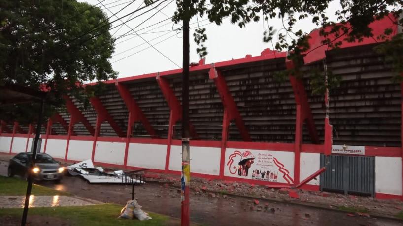 Una de los lugares que ya sufrió las consecuencias fue la cancha de San Martín de Tucumán, que sufrió la caída de parte mampostería y cartelería publicitaria.
